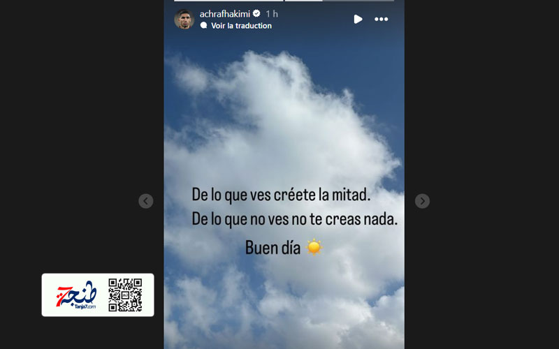 حكيمي وفي تعليق غير مباشر على تصريحات شريكته السابقة، نشر مثلا يقول “ما تراه صدق نصفه وما لا تراه لا تصدقه”.