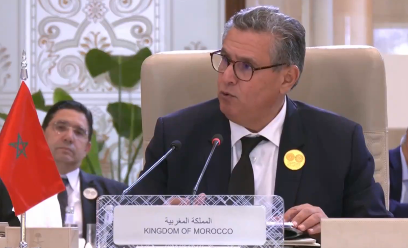 وبالاضافة الى رئيس الحكومة ،الذي رافقه في هذه القمة ، وزير الشؤون الخارجية والتعاون الافريقي والمغاربة المقيمين بالخارج، السيد ناصر بوريطة، ضم الوفد المغربي، على الخصوص، السادة محمد أيت وعلي سفير المغرب في مصر ومندوبه الدائم لدى جامعة الدول العربية ومصطفى المنصوري سفير المغرب بالمملكة العربية السعودية ، ومندوبه الدائم لدى منظمة التعاون الاسلامي، وعدد من الأطر الدبلوماسية بوزارة الشؤون الخارجية والتعاون الافريقي والمغاربة المقيمين بالخارج. و تأتي هذه القمة ، وفق مصدر رسمي سعودي ، امتدادا للقمة العربية الاسلامية المشتركة التي عقدت في الرياض بتاريخ 11 نونبر 2023، استشعارا من قادة الدول العربية والإسلامية بأهمية توحيد الجهود والخروج بموقف جماعي موحد، ي عبر عن الإرادة العربية – الإسلامية الم شتركة بشأن ما شهدته غزة والأراضي الفلسطينية من تطورات خطيرة وغير مسبوقة، تستوجب وحدة الصف العربي والإسلامي في مواجهتها واحتواء تداعياتها.