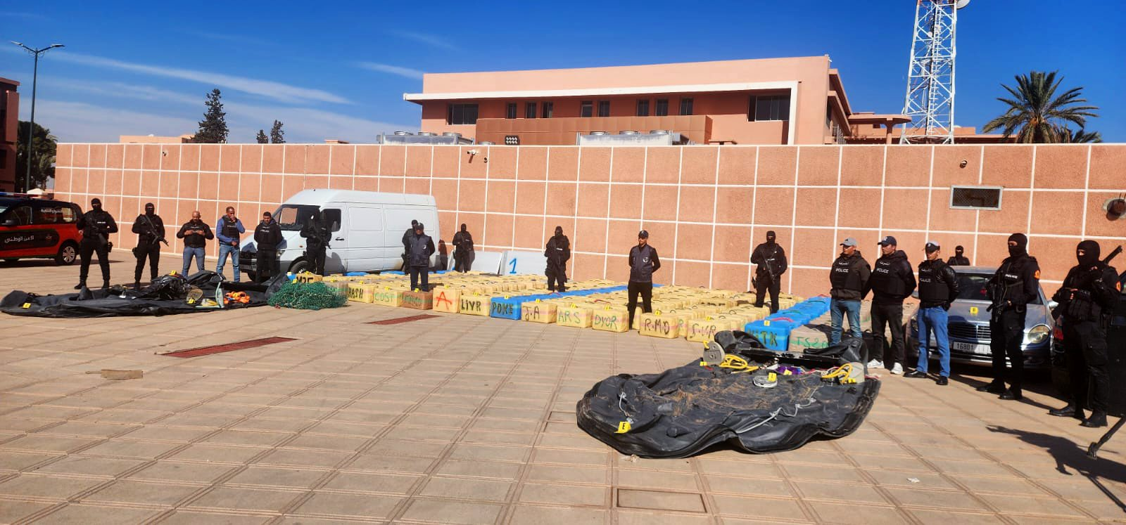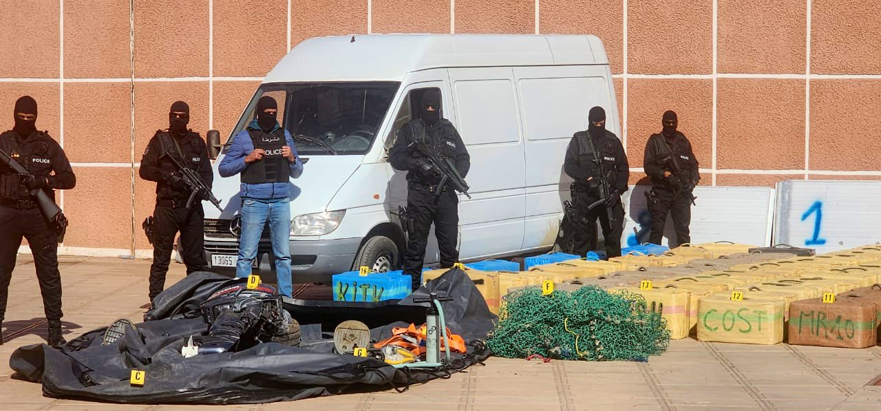 عناصر الشرطة بولاية أمن مراكش بتنسيق مع نظيرتها بمدينة آسفي، وبناء على معلومات دقيقة وفرتها مصالح المديرية العامة لمراقبة التراب الوطني، من إحباط محاولة تهريب تسعة أطنان و800 كيلوغراما من مخدر الشيرا، وتوقيف ستة أشخاص تتراوح أعمارهم ما بين 29 و59 سنة، وذلك للاشتباه في ارتباطهم بشبكة إجرامية تنشط في التهريب الدولي للمخدرات والمؤثرات العقلية.