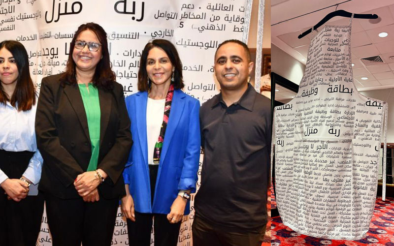 الحقوقيون عملوا على ارتداء “مئزر” يظهر المهام التي تقوم بها النساء، من أجل التحسيس وكذا الدعوة إلى وعي جماعي بواقع العمل المنزلي غير المرئي.