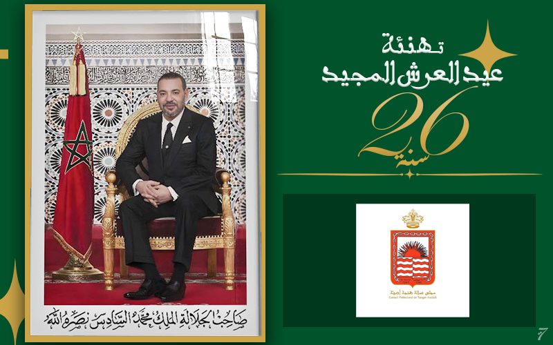 تَقدّم رئيس مجلس عمالة طنجة أصيلة امحمد احميدي بتهنئة إلى صاحب الجلالة الملك. وذلك بمناسبة الذكرى السادسة والعشرين لتربع جلالته على عرش أسلافه المنعمين.