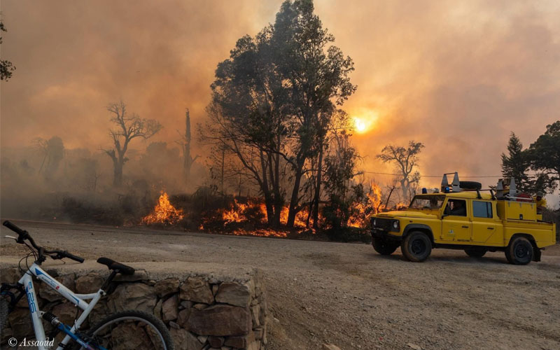 وأضاف أنه أعطيت الأولوية في عمليات التدخل لحماية الأرواح والممتلكات والموارد الغابوية. حيث تمت الاستعانة بالأسطول الجوي المتكون من طائرات “كاندير” التابعة للقوات الملكية الجوية. وطائرات “توربو تراشت ” التابعة للدرك الملكي.