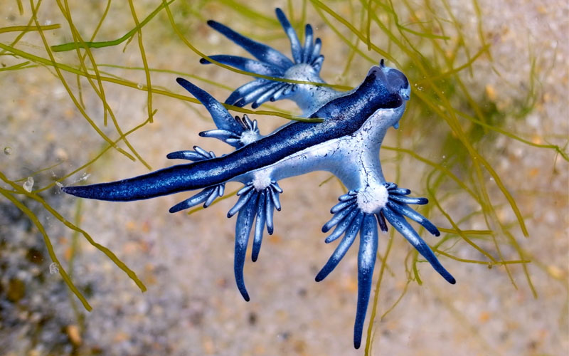 ويتعلق الأمر بكائن بحري نادر يعرف باسم “التنين الأزرق” (Glaucus Atlanticus). يتميز بمظهره اللافت ولسعته المؤلمة.