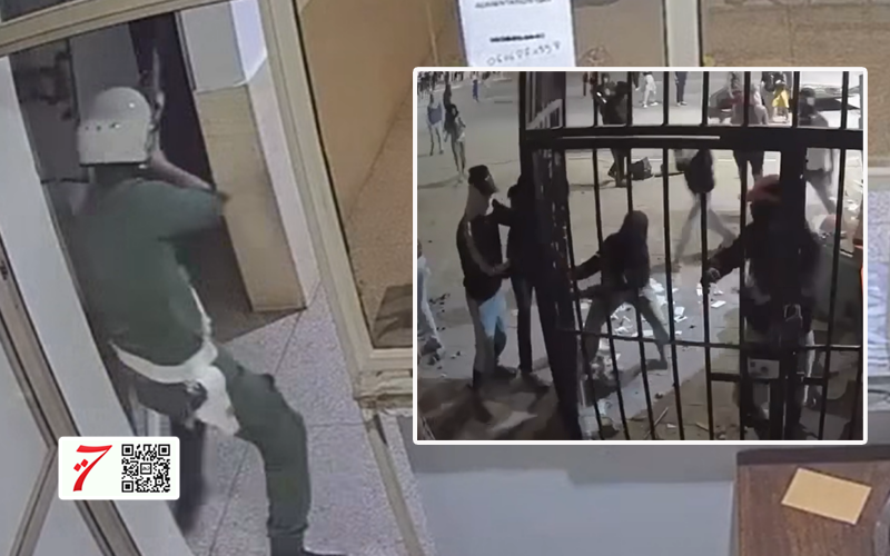 وأظهر الفيديو إقدام أشخاص على الاعتداء على المركز والشروع في إضرام النار فيه، ومحاولة اقتحامه، لترد عناصر الدرك بإطلاق النار.