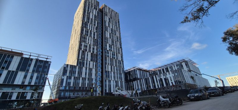 وفي إطار انخراطه في مقاربة مستدامة، حصل المركب الاستشفائي الجامعي الدولي محمد السادس للرباط على شهادة الجودة البيئية العالية (HQE) من مستوى “ممتاز”. وهو مجهز بـ 8800 متر مربع من الألواح الكهروضوئية، تغطي أكثر من 10 في المئة من احتياجاته الطاقية، ما يمكن من تقليص انبعاثات الكربون بنسبة 40 في المئة.