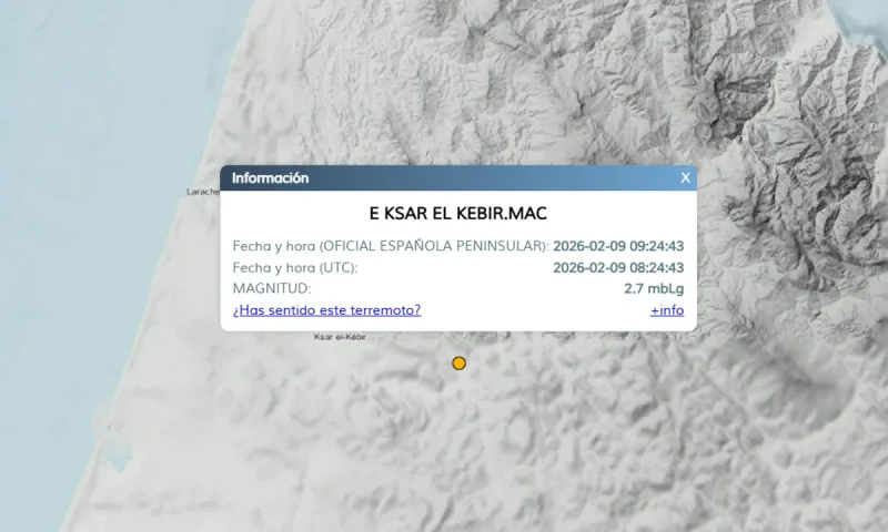 سجلت هزة أرضية بلغت قوتها 2.7 درجة على مقياس ريختر (mbLg) صباح اليوم الإثنين 9 فبراير، مركزها شرق مدينة القصر الكبير بإقليم العرائش.