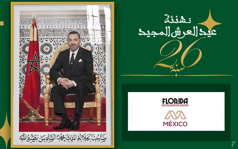 The management of the “Florida” and “Mexico” restaurants in Tangier extended their congratulations to His Majesty King Mohammed VI on the occasion of the 26th anniversary of his ascension to the throne.