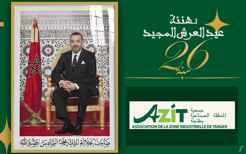 The Association of the Tangier Industrial Zone, “AZIT,” extended its congratulations to His Majesty King Mohammed VI on the occasion of the 26th anniversary of his accession to the throne of his illustrious ancestors.