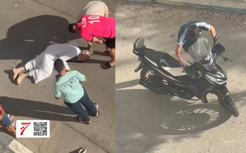 A citizen documented the escape of a motorcyclist after he hit an elderly man while crossing the road. Despite being warned of the consequences of fleeing the scene, the young man started his motorcycle and left the area, leaving the victim on the ground with blood streaming from his head.