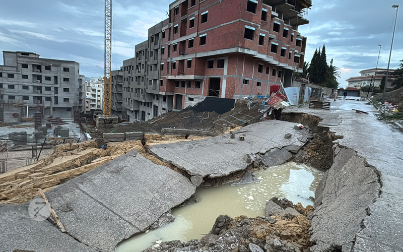A section of a road adjacent to a construction site for a housing complex in the Alia neighborhood of Tangier collapsed on the evening of Friday, November 14.