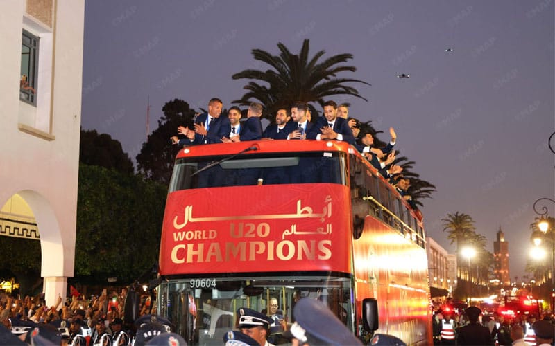 La ciudad de Rabat vivió la tarde del miércoles 22 de octubre un recibimiento popular y entusiasta para los miembros de la selección nacional de fútbol sub-20, tras su histórico triunfo en la Copa del Mundo en Chile el pasado domingo.