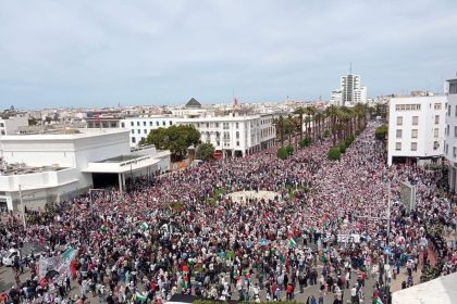 مظاهرة حاشدة في الرباط ضد الحرب على غزة والتطبيع مع إسرائيل
