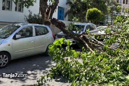 رياح قوية تَتسبّب في سقوط غصن شجرة وسط شارع بطنجة