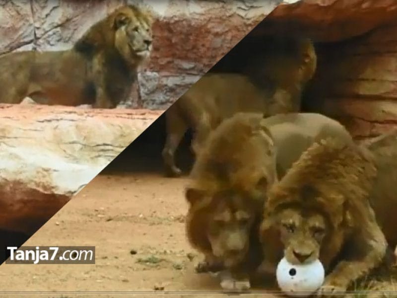 حديقة الحيوانات في الرباط التي تتوفر على آخر أسود الأطلس، عرضت من جنبها مقطعا للأسود وهي تلعب بكرة للقدم، مع التذكير بتاريخ هذه الحيوانات القوية والمميزة.