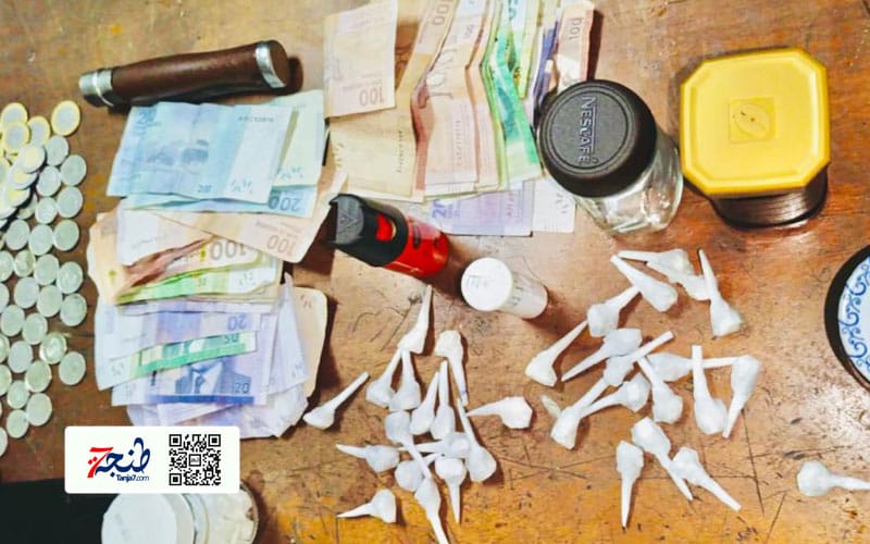 وقد جرى توقيف المعني بالأمر على مستوى الفضاء الاخضر بحي مرشان متن دراجة نارية ، حيث اسفرت عملية التفتيش المنجزة في هذه القضية عن ضبط وحجز ما مجموعه 102 لفافة من مخدر الكوكايين وهواتف نقالة و سلاح ابيض بيضاء علاوة عن قنينة غاز مسيلة للدموع و ومبلغ مالي يشتبه في كونه من عائدات هذا النشاط الاجرامي.