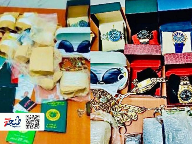 السلطات الأمنية حجزت أيضا كميات من مخدر الحشيش تقدر بكيلوغرام واحد و750 غرام والعديد من الساعات والمنقولات، وأكياس من مادة البيكاربونات، وسكينين، ومجموعة من الساعات اليدوية والمنقولات المشكوك فيها، والتي يجري تحديد مصدرها.