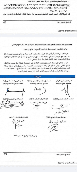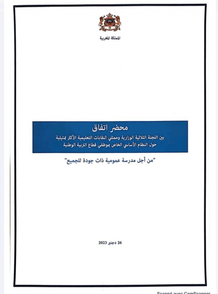 وقعت 5 نقابات بينهم الجامعة الوطنية للتعليم التوجه الديمقراطي على محضر اتفاق مع اللجنة الثلاثية الوزارية بخصوص النظام الأساسي للتعليم، يوم الثلاثاء 26 دجنبر، بينما أعلنت تنسيقيات تعليمية عن خوض إضراب لمدة 4 أيام.