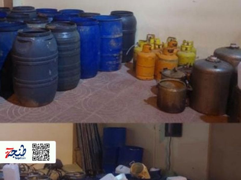 وقد جرى توقيف المشتبه به في حالة تلبس بحيازة وترويج مسكر ماء الحياة، قبل أن تسفر عملية التفتيش التي أجريت بداخل مسكنه عن حجز 440 لترا من مسكر ماء الحياة وأربعة أطنان من السوائل المخمرة، علاوة على 24 برميلا و 16 طنجرة ضغط و 10 قنينات غاز و 14 موقد ناري.