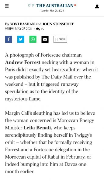 الجريدة الأسترالية، وفي عددها الصادر ليوم الثلاثاء 28 ماي، اعتمدت على صورة نشرتها صحيفة “ديلي ميل البريطانية” ثم حذفت المقالة دون توضيحات يوم 25 ماي الحالي، وقالت إنها قامت بإجراء بحث جعلها تعتقد أن السيدة التي ظهرت تقبل رجل الأعمال هي الوزيرة المغربية ليلى بنعلي.