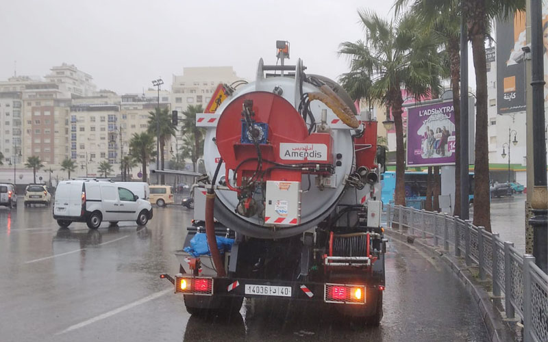 تزامنًا مع هطول الأمطار.. أمانديس تُراقب تصريف المياه في شوارع طنجة استعدادًا لفيضانات مُحتمَلة