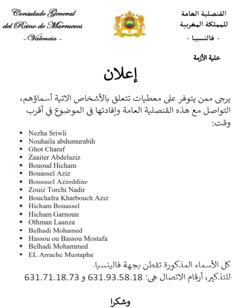 القنصلية كانت قد أطلقت نداء يوم السبت، تطلب فيها معلومات عن 16 شخصا.