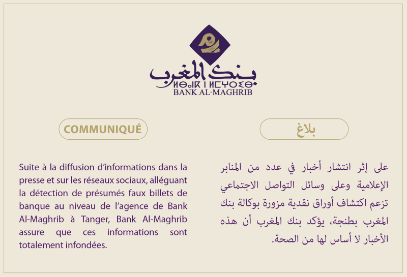 كذب بنك المغرب ما نشرته وسائل إعلام محلية ووطنية بخصوص “العثور على أوراق نقدية مزورة” في وكالته بمدينة طنجة.