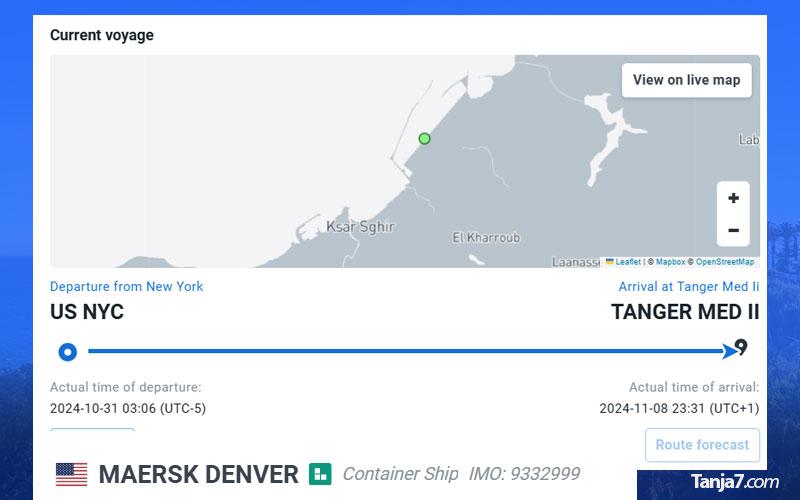 هذا وقد أظهرت مواقع الرصد البحرية وصول السفينة إلى طنجة قبل منتصف الليل، وذلك عند الحادية عشرة والنصف ليلا بتوقيت المغرب يوم الجمعة 8 نونبر.