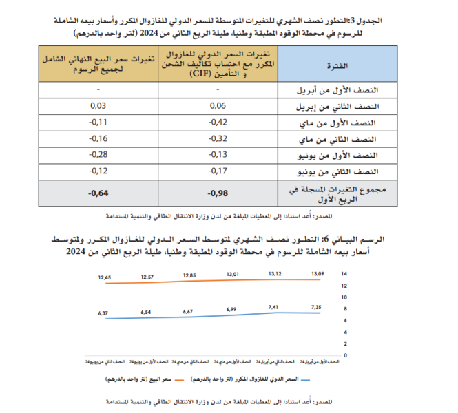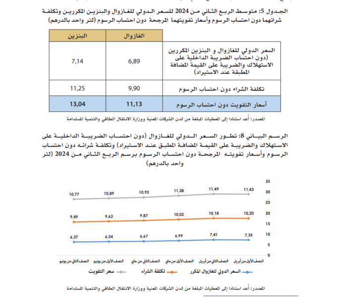 وبحسب المجلس فإن الربع الثاني من 2024، تميز بارتفاع واردات الغازوال والبنزين الإجمالية بنسبة بلغت 11.2 في المائة من حيث الحجم، محققة حوالي 1.65 مليون طن، و15.93 في المائة من حيث القيمة، وهو ما يمثل 14.03 مليار درهم على أساس سنوي.