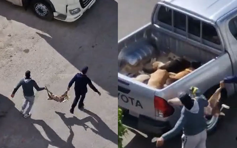 عرض نشطاء حركة الشباب الأخضر مشاهد تظهر جمع جثث كلاب، بعد قتلها في مدينة طنجة.
