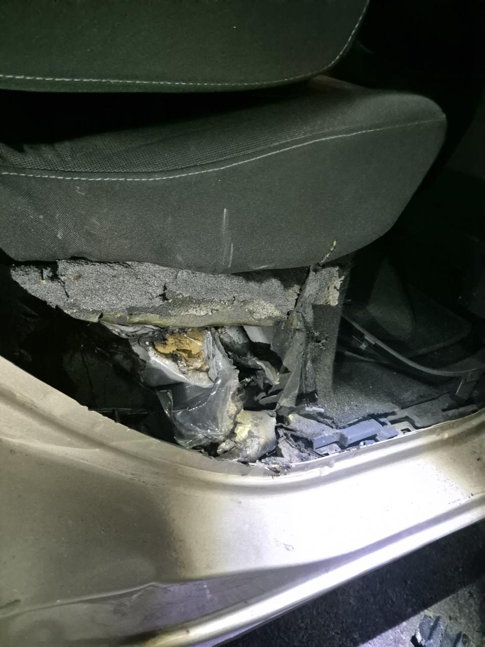 وقد مكنت عمليات الفحص بالسكانير، التي خضعت لها السيارة المسجلة بدولة (إسبانيا)، من العثور على علب بداخلها كمية مهمة من الشيرا تحت أسفل الكرسي الخلفي للسيارة وتحتوي على 42 كيلوغراما من مخدر الشيرا .
