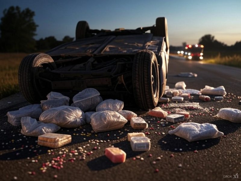انقلاب سيارة في حادث سير يكشف كميات من الحشيش والكوكايين والأقراص المهلوسة