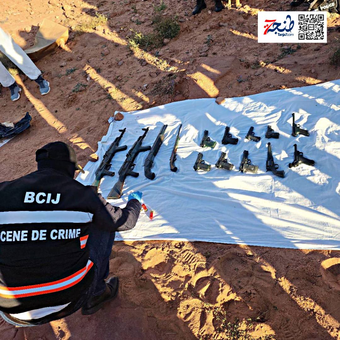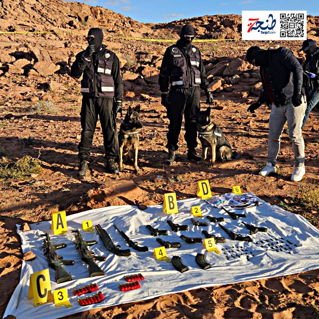 وقد مكنت عمليات التفتيش والتمشيط، التي استغرقت أكثر من ثلاث ساعات تقريبا، من العثور على شحنة من الأسلحة والذخيرة النارية مدفونة في مكان منزو أسفل المرتفع الصخري، كانت ملفوفة في أكياس بلاستيكية وجرائد ورقية منشورة بدولة مالي، من بينها أسبوعيات ورقية صادرة بتاريخ 27 يناير 2025.