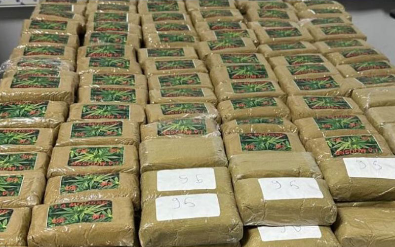 بعد إخضاعها لجس يدوي وتفتيش دقيق أسفر البحث عن حجز 27 كيلوغرامات من مخدر الشيرا مدسوسة في الحقيبة الأولى على شكل صفائح وملفوفة بشريط لاصق، في حين أظهرت عملية تفتيش الحقيبة الثانية عن حجز 19 كيلوغرام من مخدر الشيرا على شكل صفائح .
