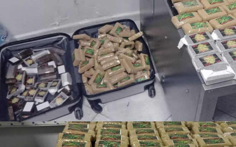 عثرت مصالح الأمن على مستوى مطار طنجة على ما يقدر بـ 46 كلغ من الحشيش داخل حقائب مسافرين.