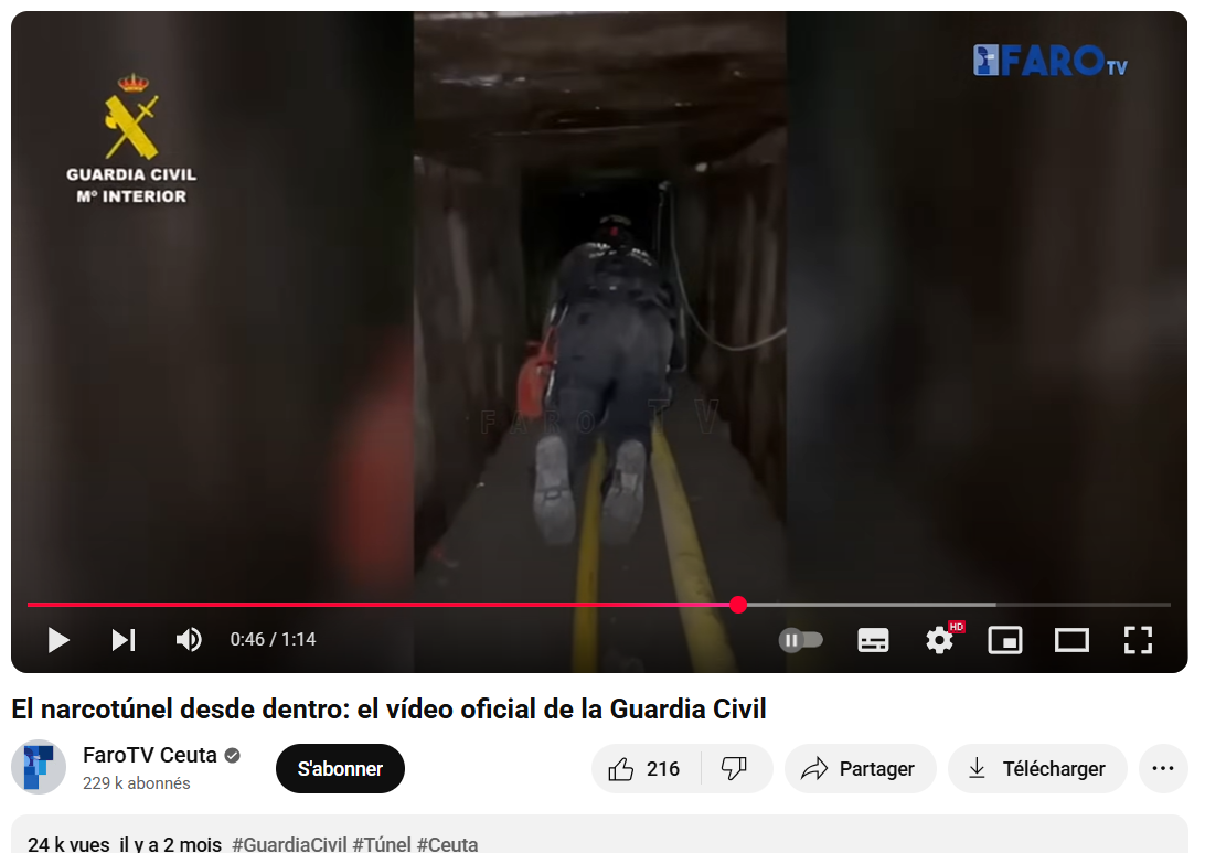 الرواية الجزائرية سرعان ما تم إحباطها وكشف كذبها، فالفيديو الذي نشره التلفزيون حديث وعرض بداية السنة الحالية، من قبل الحرس المدني الإسباني، بعد اكتشاف نفق يعتقد أنه يستخدم لتهريب الحشيش.