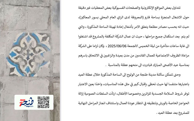 الأسوأ من الإسم هو التبرير الذي قدمه البلاغ المجهول. إذ اعتبر أن الأشغال “ليست نهائية” وأنها توقفت لمراعاة ظروف العمال.