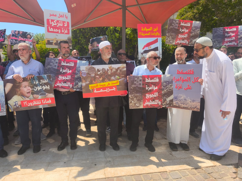 كمال الخطيب نائب رئيس الحركة الاسلامية قبل الحظر الاسرائيلي، رئيس لجنة الحريات والدفاع عن الأسرى، قال إن الوقفة أمام سفارة مصر هي ضد الحرب والتجويع في غزة، وأنها استجابة لدعوة من اتحاد أئمة المساجد في وادي عارة.