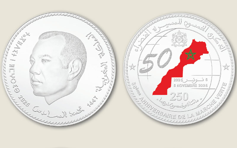 El Banco de Marruecos anunció en un comunicado la emisión de una moneda conmemorativa de plata de 250 dirhams, en celebración del 50 aniversario de la Marcha Verde.