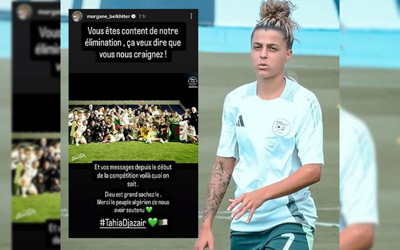 Suite à l’élimination de l’équipe algérienne féminine de football lors de la Coupe d’Afrique des Nations, la joueuse Morgan Belkhiter a exprimé son mécontentement vis-à-vis des réactions de certaines voix marocaines. Dans un message adressé aux supporters marocains, elle a déclaré : « Vous vous réjouissez de notre élimination, ce qui signifie que vous avez peur de nous. »