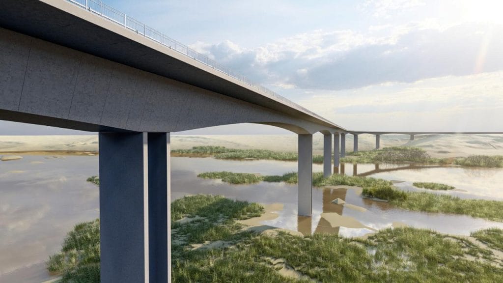 Ce pont, qui surplombe le fleuve Oued Eddahab et est supervisé par le ministère de l’Équipement et de l’Eau, devrait être achevé en juillet 2027. Il repose sur 15 structures soutenues par des fondations profondes (piliers) et s’étend sur un total de 7 kilomètres.