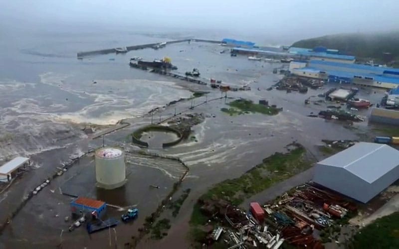 Le ministère russe des Situations d’urgence a indiqué que des vagues de tsunami, causées par ce tremblement de terre survenu dans l’océan Pacifique près de la péninsule de Kamtchatka, ont engendré des inondations à Severokourilsk, une ville de deux mille habitants. Dans un communiqué, le ministère a informé que « des parties de la ville ont été submergées » et que les résidents ont été évacués. Les vidéos diffusées sur les réseaux sociaux montrent des infrastructures submergées.