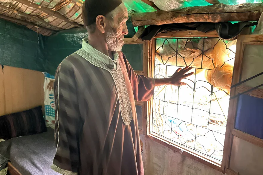 Abarda, qui fait partie des victimes du tremblement de terre de 2023 ayant fait prĂšs de 3000 morts, a renouvelĂ© les bĂąches de sa tente en raison des dommages causĂ©s par le soleil et le vent, tout en attendant toujours de lâaide pour construire une nouvelle maison.
