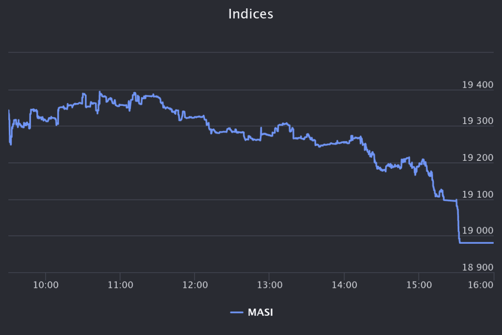 L’indice « MASI.20 », qui reflète la performance de 20 entreprises cotées, a enregistré une perte de 2,12 % pour atteindre 1.542,04 points, tandis que l’indice MASI.ESG, qui évalue les entreprises ayant obtenu la meilleure notation ESG, a chuté de 1,90 % à 1.292,15 points.