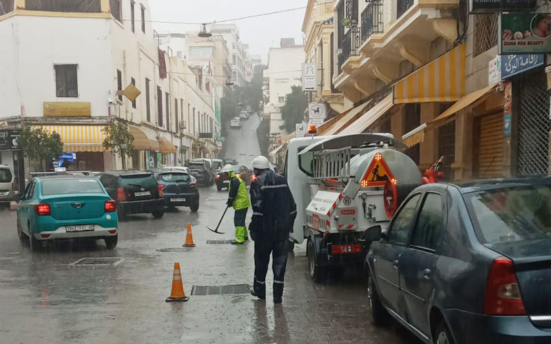 تزامنًا مع هطول الأمطار.. أمانديس تُراقب تصريف المياه في شوارع طنجة استعدادًا لفيضانات مُحتمَلة